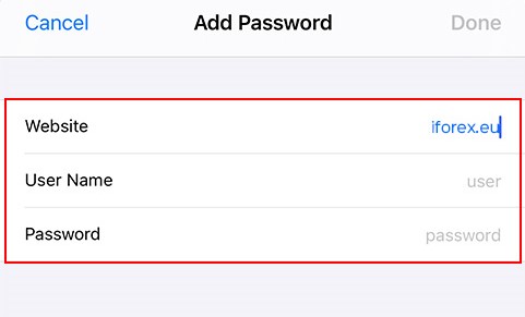 - Agregue su nombre de usuario y contraseña para el sitio web de iFOREX Europe