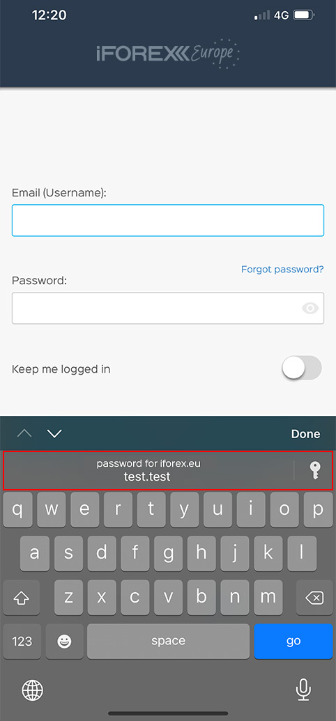 - Przejdź do loginu iFOREX Europe i kliknij pole nazwy użytkownika. Wybierz sugerowaną nazwę użytkownika i/lub hasło wyświetlane w górnej części klawiatury
